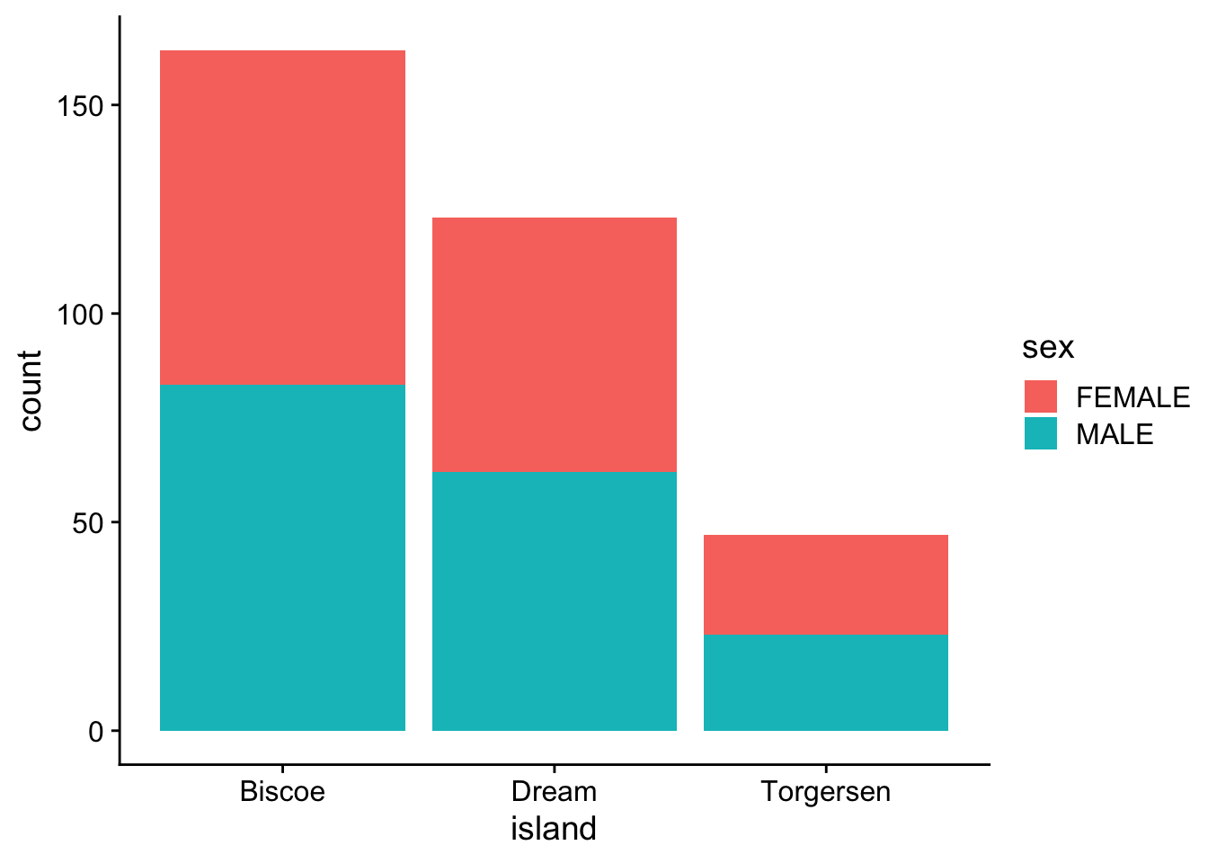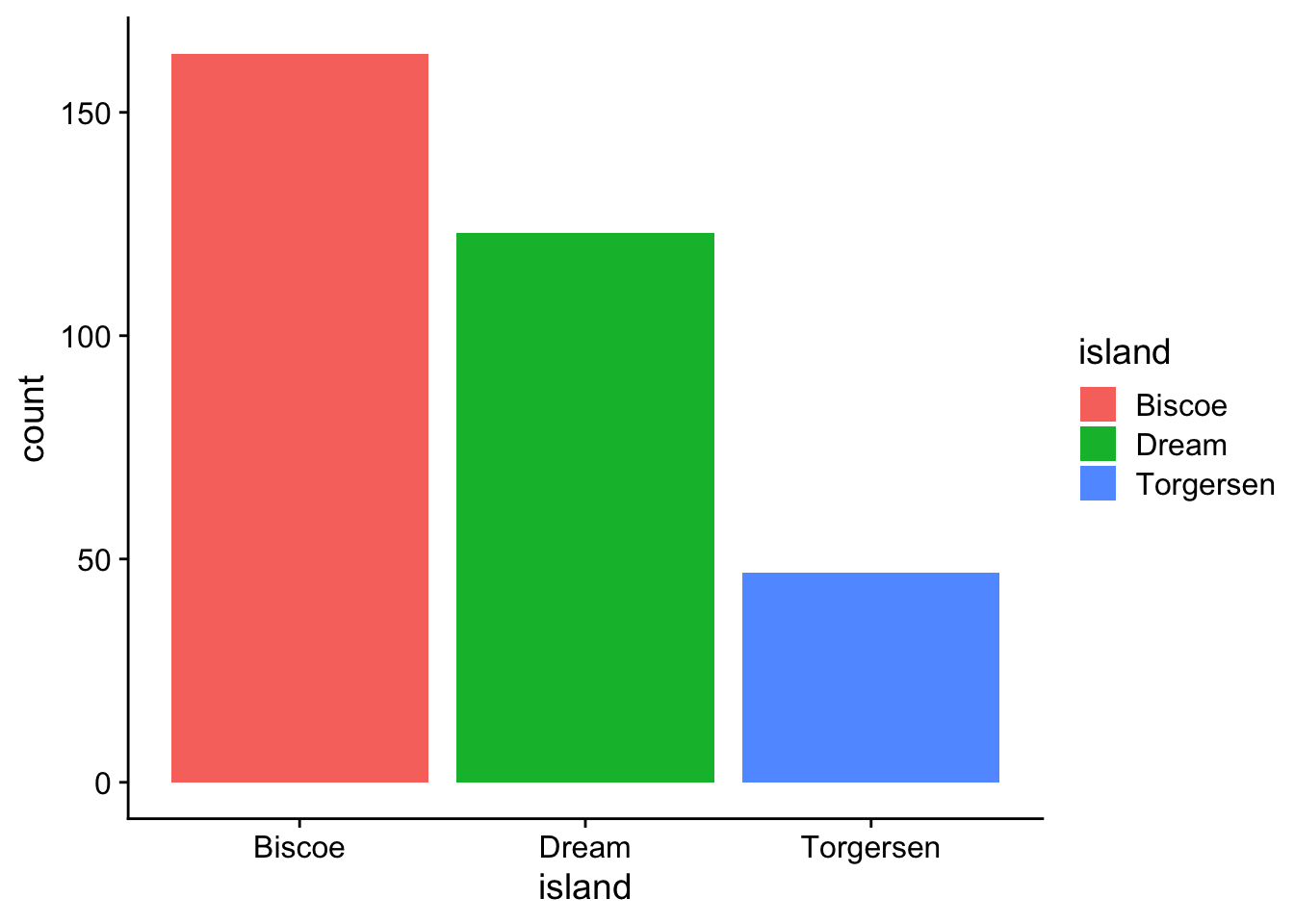 $ island : chr [1:344] "Torgersen" "Torgersen" "Torgersen" "Torgersen" ...