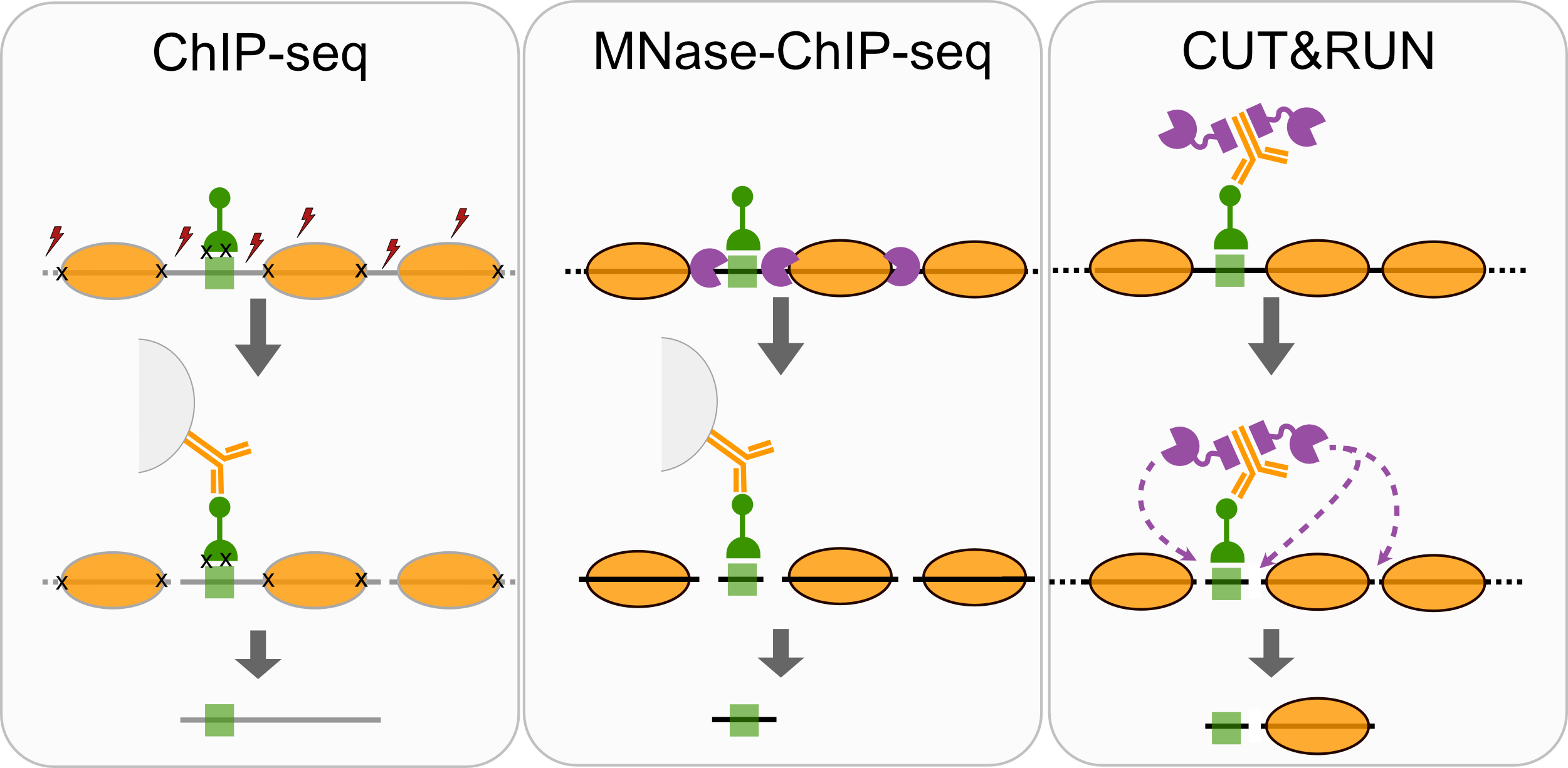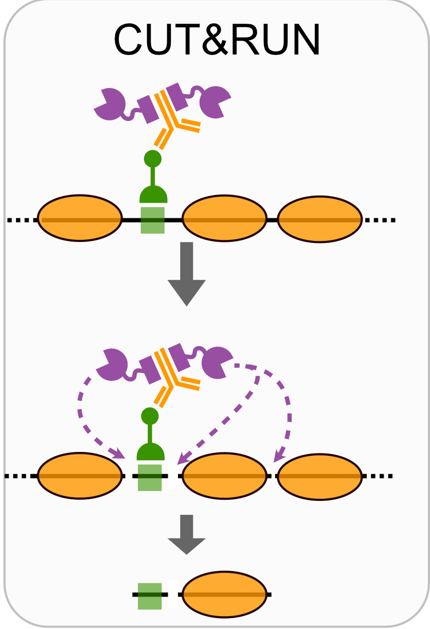 - A separate reagent, a fusion of Protein A (which binds IgG) and micrococcal nuclease (MNase) then associates with the antibody.