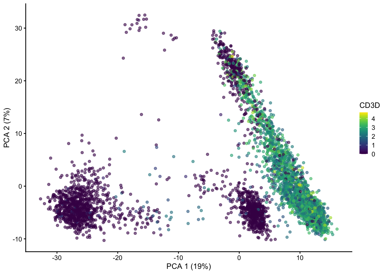 How many variable genes to use? Depends on the data, generally use more variable genes with more complex and heterogeneous data. 1,000 - 2,000 is a reasonable starting point. Explore the impact of changing the getTopHVGs() arguments n or prop on the PCA, UMAP, and clustering.