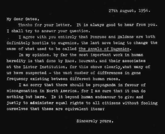 These views did not appear to be common at UCL in the 1930s. For example, they were not held by JBS Haldane, Egon Pearson (son of Karl), and Lionel Penrose.