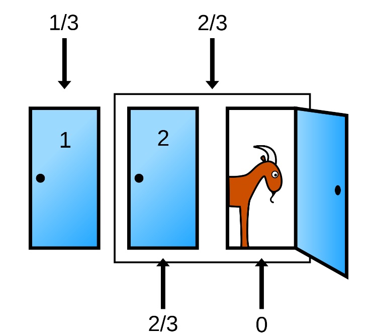 Suppose you’re on a game show, and you’re given the choice of three doors: Behind one door is a car; behind the others, goats. You pick a door, say No. 1, and the host, who knows what’s behind the doors, opens another door, say No. 3, which has a goat. He then says to you, “Do you want to pick door No. 2?” Is it to your advantage to switch your choice? ~ (From Parade magazine’s Ask Marilyn column)