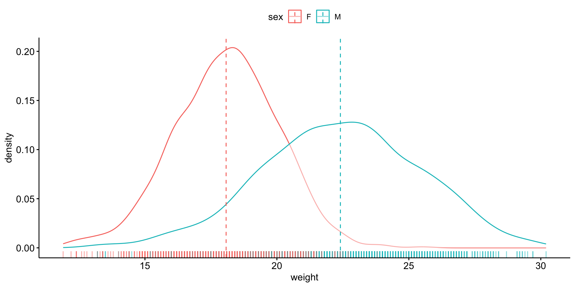 \(weight\) ~ \(sex\)