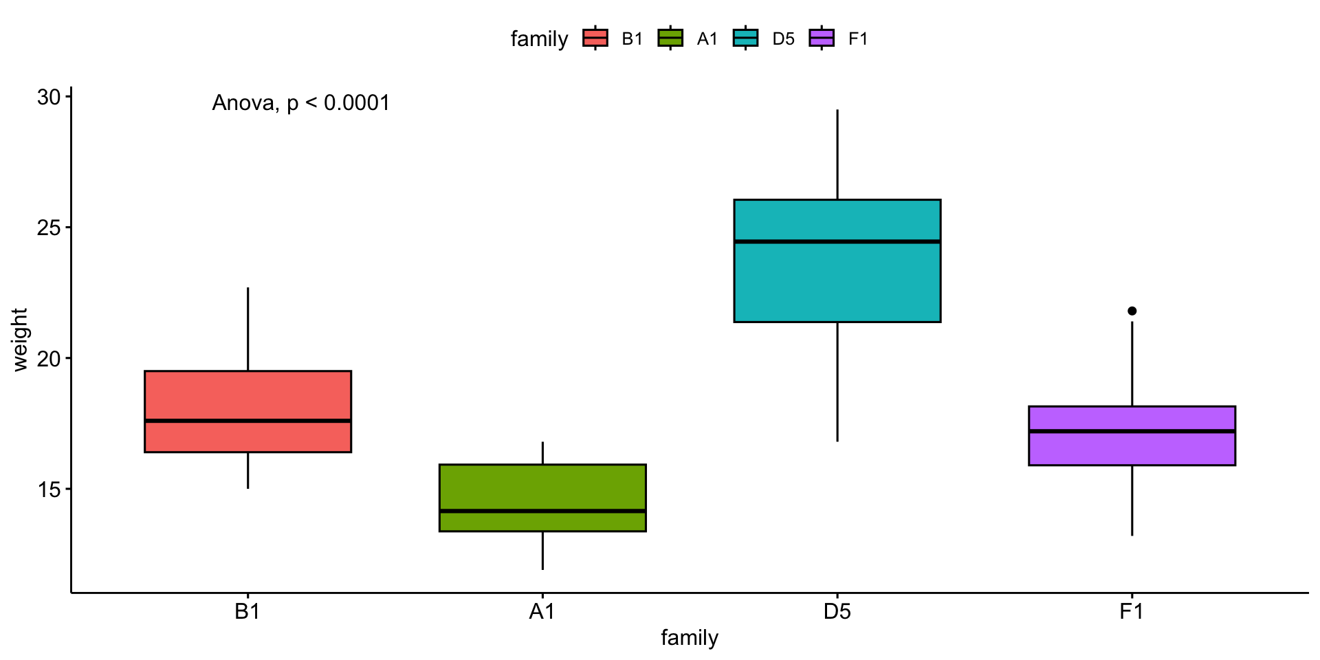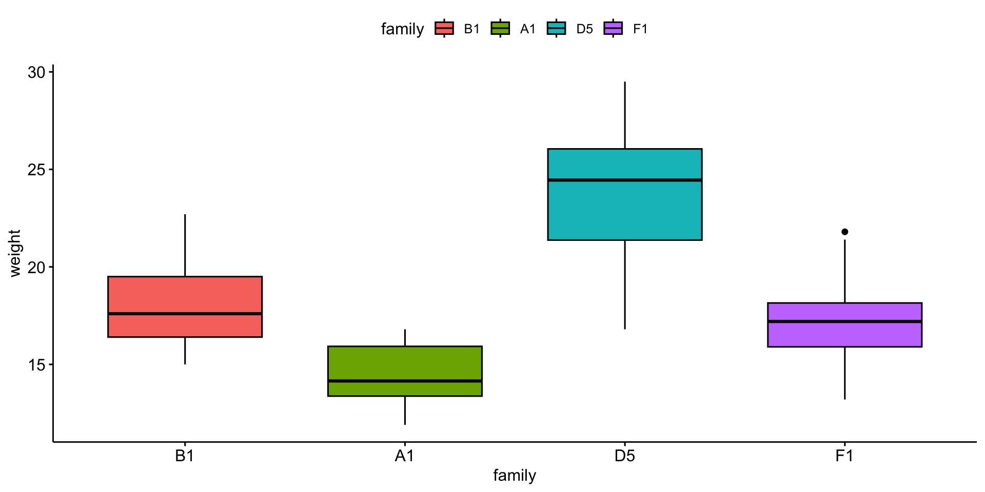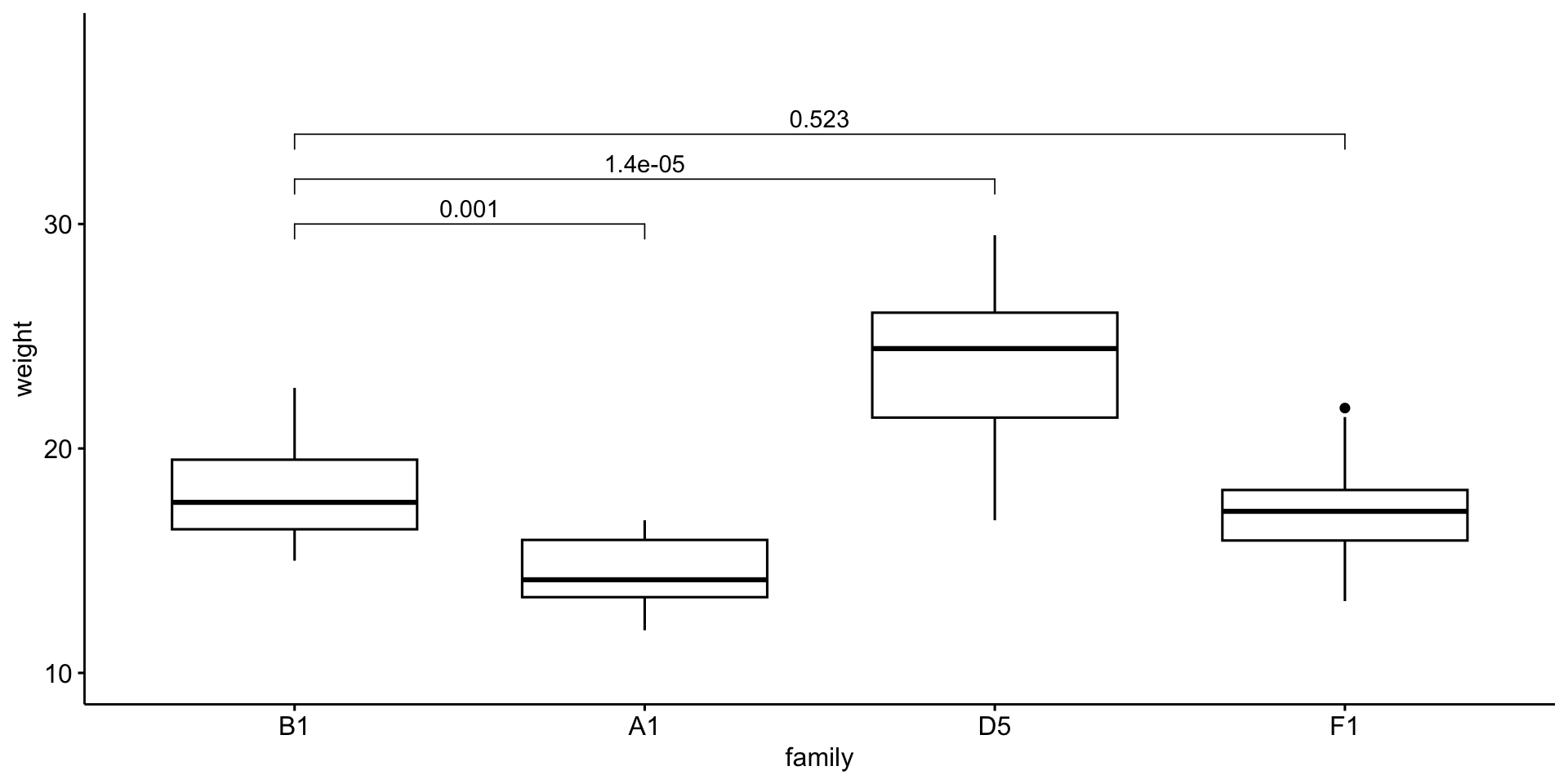 We will compare mouse \(weight\) by \(family\).