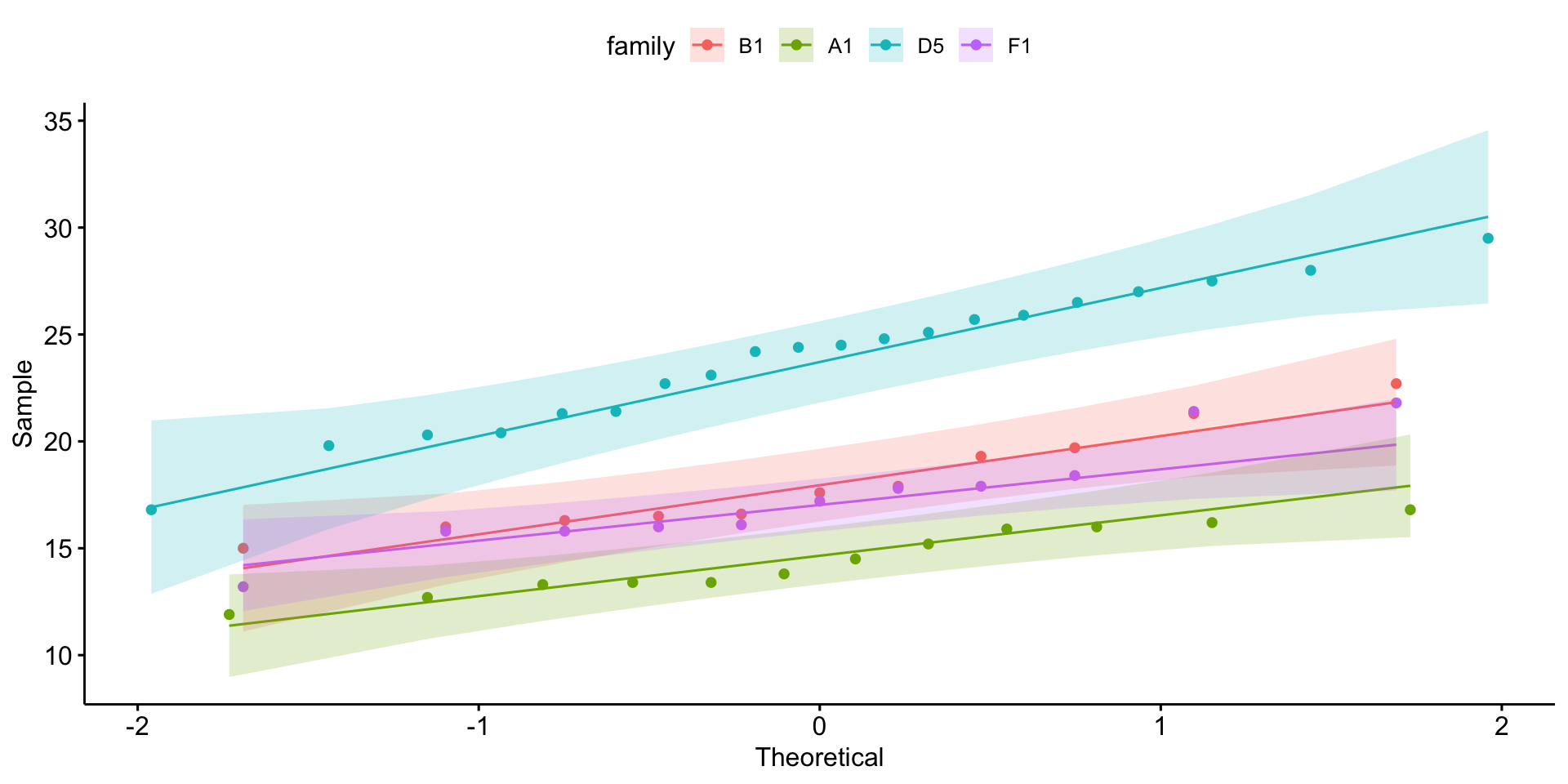 bfam$family <- relevel(x = bfam$family, ref = "B1")I want the response variable on the \(y\) axis and the explanatory variable on the \(x\) axis.